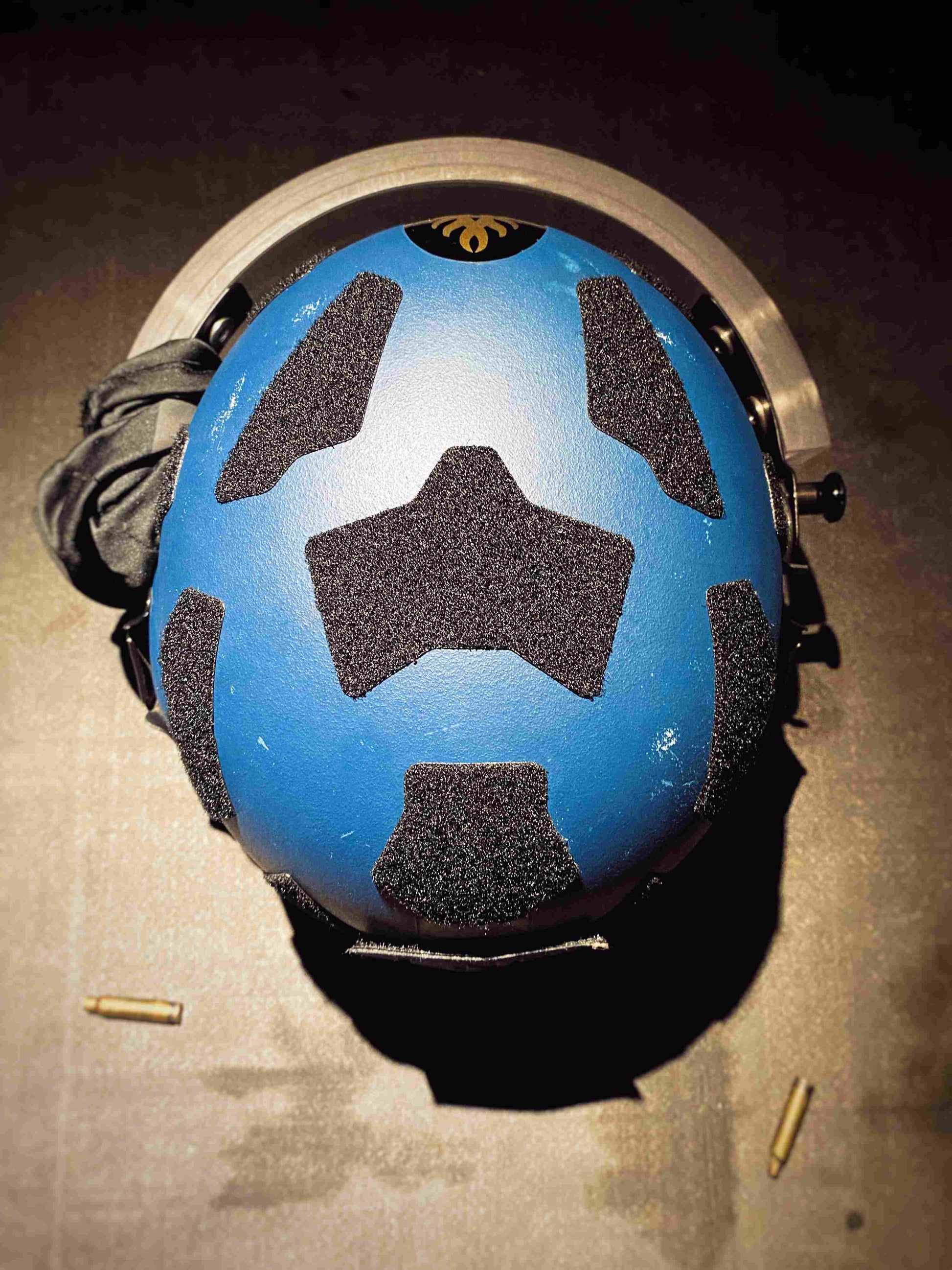 3 - Utiliser un sèche cheveux sur le casque et l'adhésif velcro pour améliorer l'adhérence, appliquer l'adhésif velcro en ayant au préalable repéré le bon positionnement.